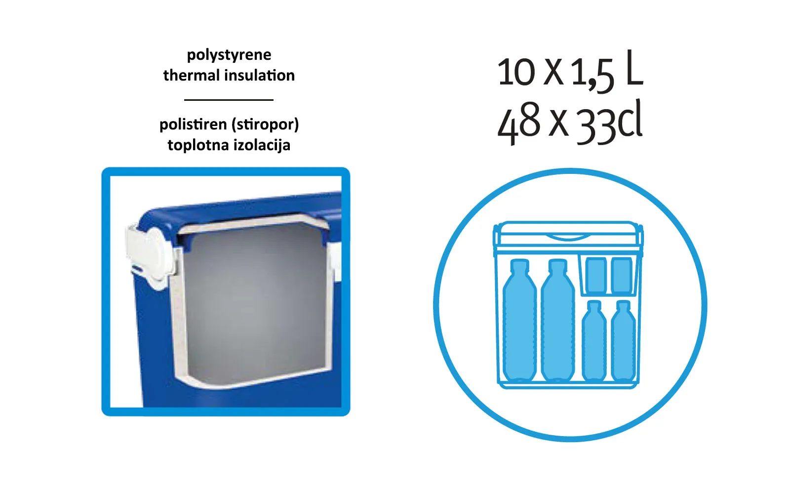 Odpravite se na brezskrbno pohajkovanje in ob tem ne bodite ne lačni, ne žejni. Za to poskrbi hladilna torba Adriatic zeleno-sive barve s prostornino 29 litrov, dimenzij 40 x 46 x 23,6 centimetrov, narejena iz polistirena, s kakovostno termično izolacijo in posledično manjšo toplotno ali hladilno izgubo. Ohranja vašo hrano in pijačo svežo in okusno. Vanjo lahko pospravite 10 plastenk po 1,5 litra ali 48 pločevink po 33cl pijače. Hladilna torba ima pa še dodatno snemljivo škatlico s katero poskrbite da bodo živila pregledno in higijensko shranjena. Catas tested.