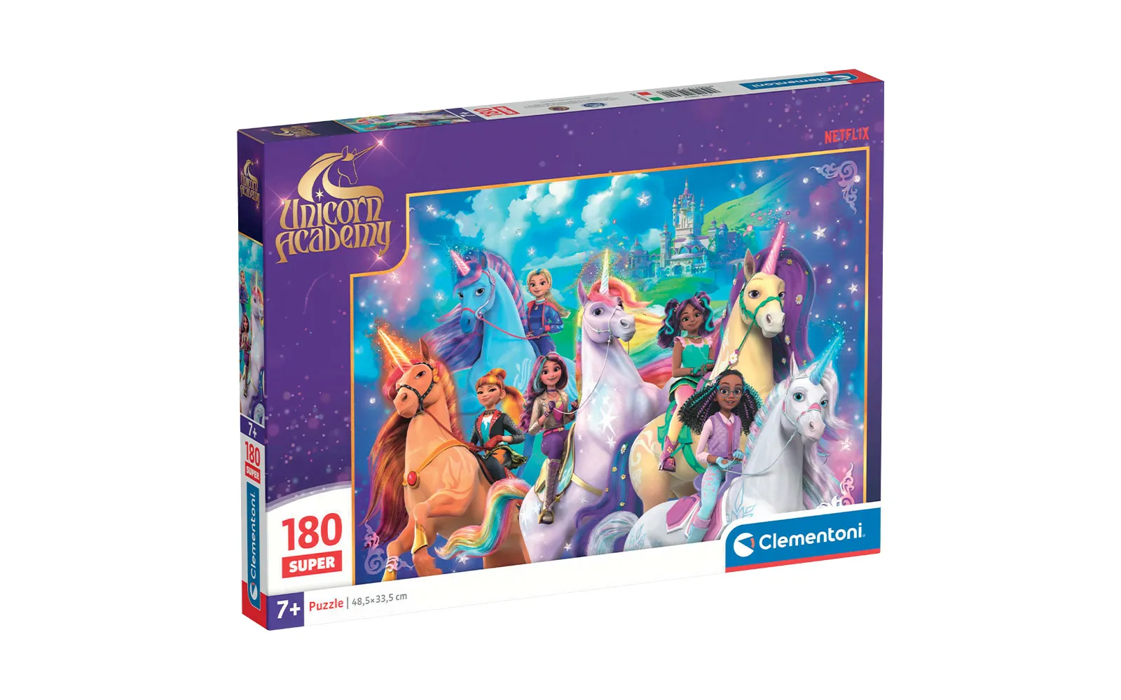 Sestavljanka z motivom Unicorn academy s 180 sestavnimi deli. Za otroke od 7. leta dalje.