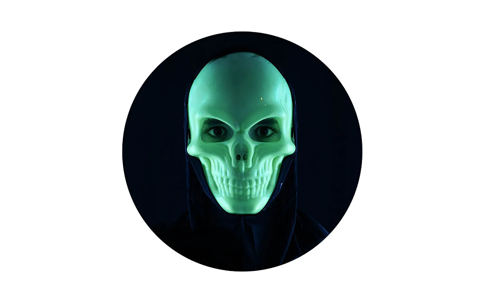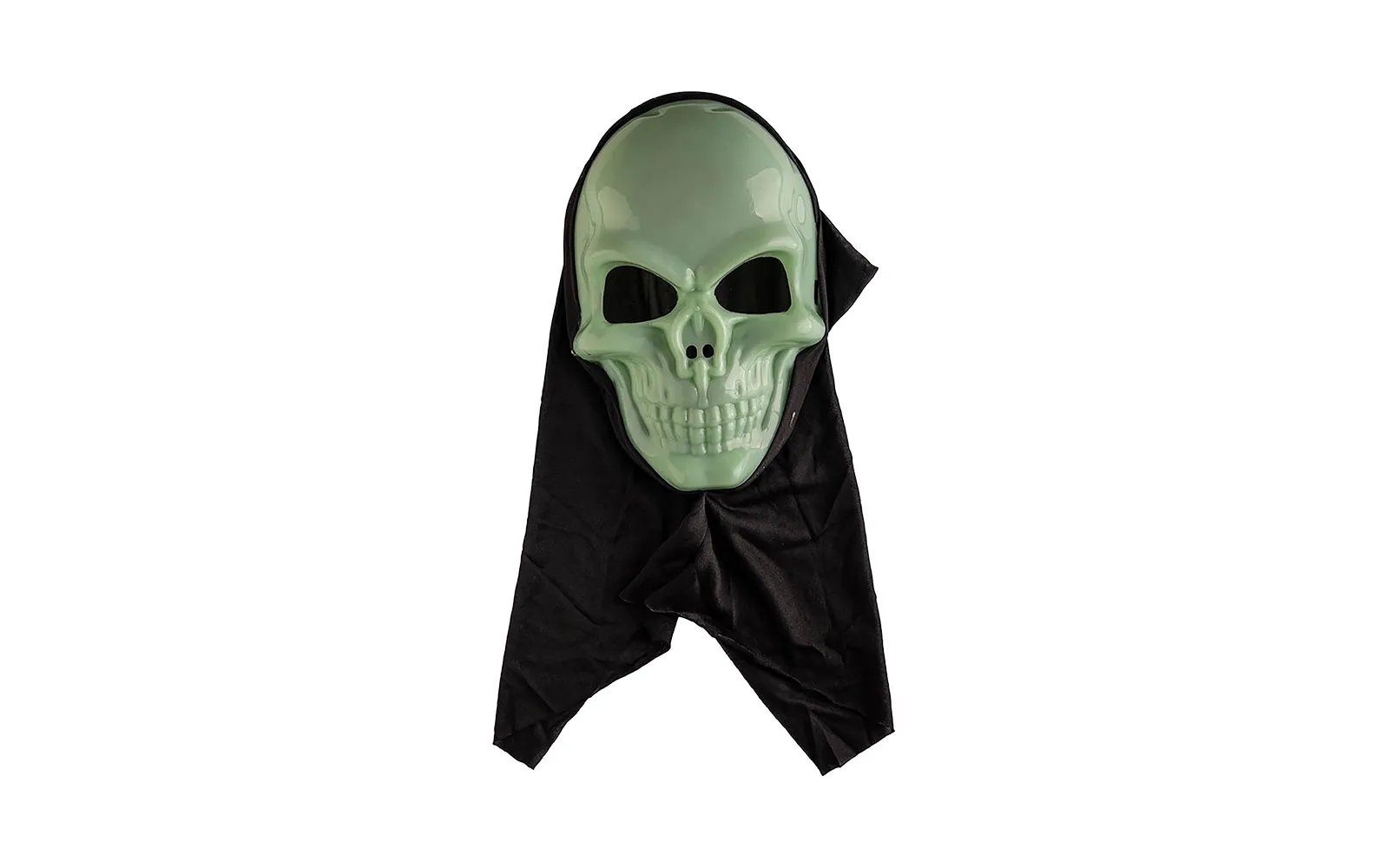 Maska okostnjaka, Carnival Toys.Maska je strašljivega izgleda, s katero boste zlahka prestrašili še tako pogumne prijatelje. Material: PVC. Maska se v temi sveti.