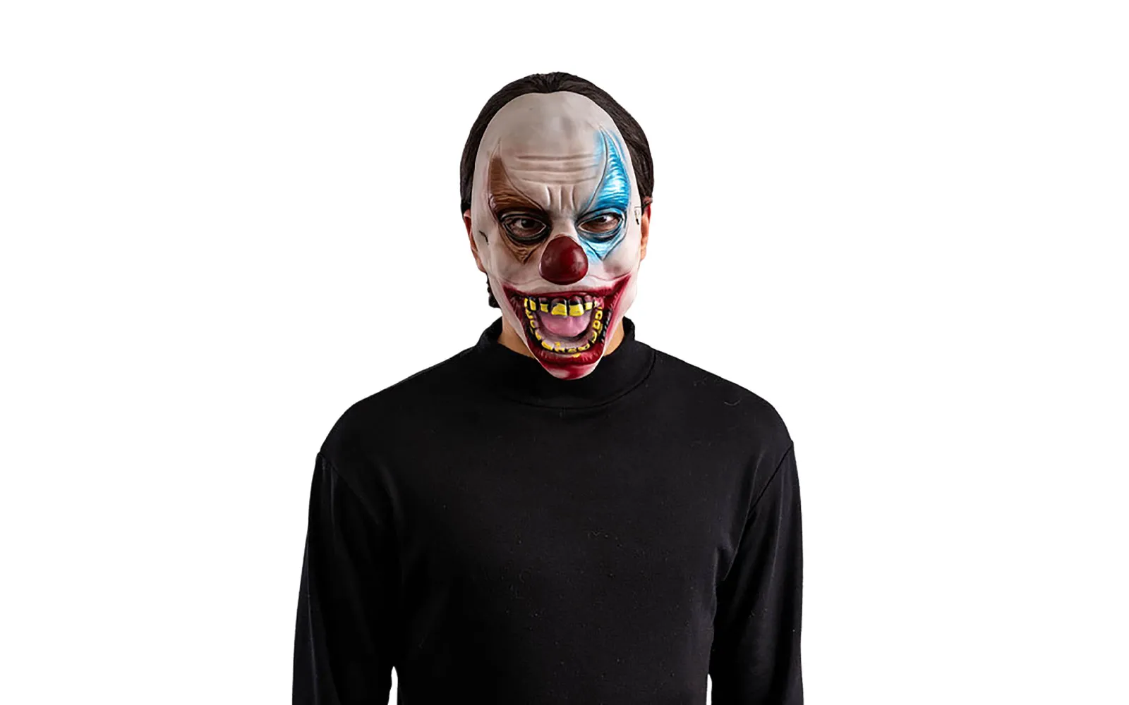 Pustna maska klovn. Maska je iz PVC materiala in primerna za pravo pustno preobrazbo. Izberi si še kostum in že boš najboljša pustna maska! Maska ima poslikan obraz, ogromno zobovje in je primerna za prestrašiti še tako pogumne prijatelje!