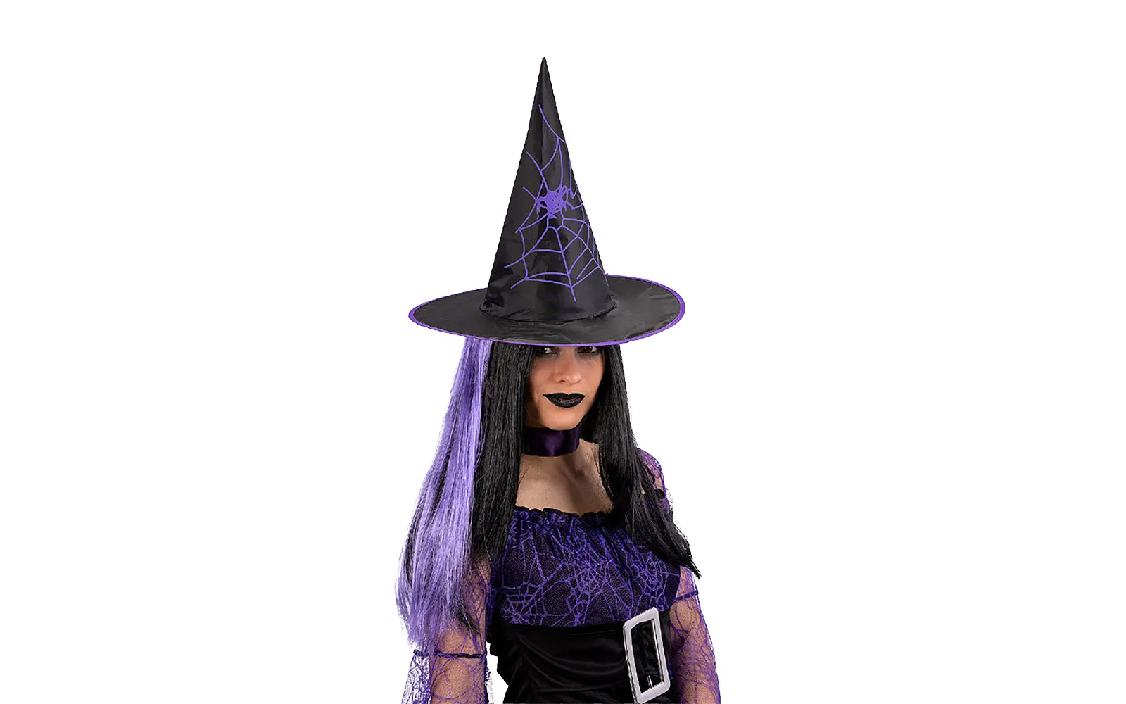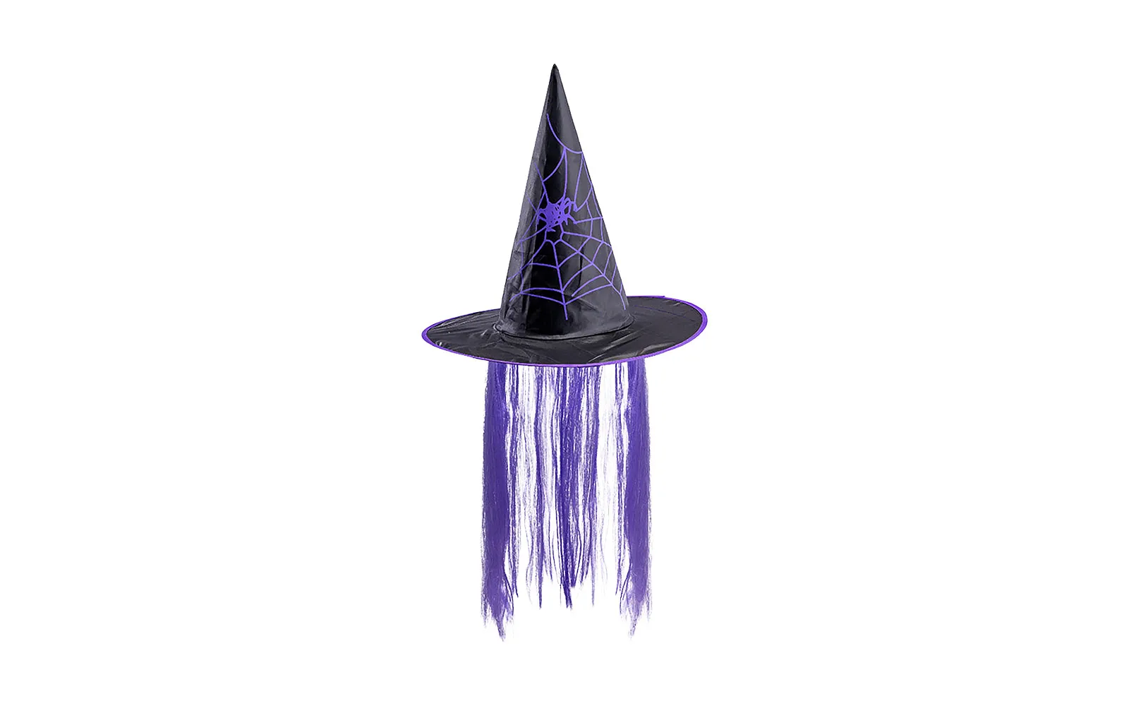 Čarovniški klobuk z vijoličnimi, oranžnimi ali belimi lasmi, Carnival Toys. Klobuk je prava izbira za popestritev pustnega kostuma in izstopanje v pustni množici.