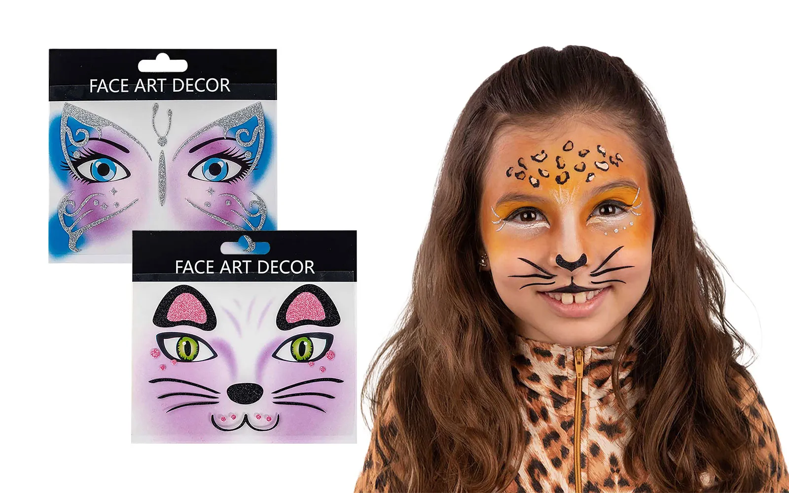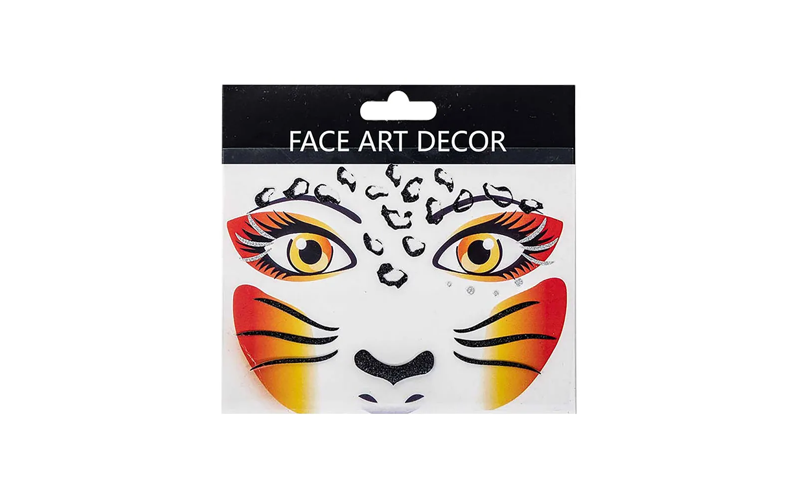 Pustna obrazna dekoracija - leopard, Carnival Toys.Popolna dopolnitev za pustne in otroške preobleke! Samolepilna dekoracija v obliki leoparda za hitro in učinkovito okrasitev obraza. Enostavna uporaba brez dodatnega ličenja – samo prilepiš in zablestiš! Idealna za zabave, rojstne dneve ali pustne dogodivščine.