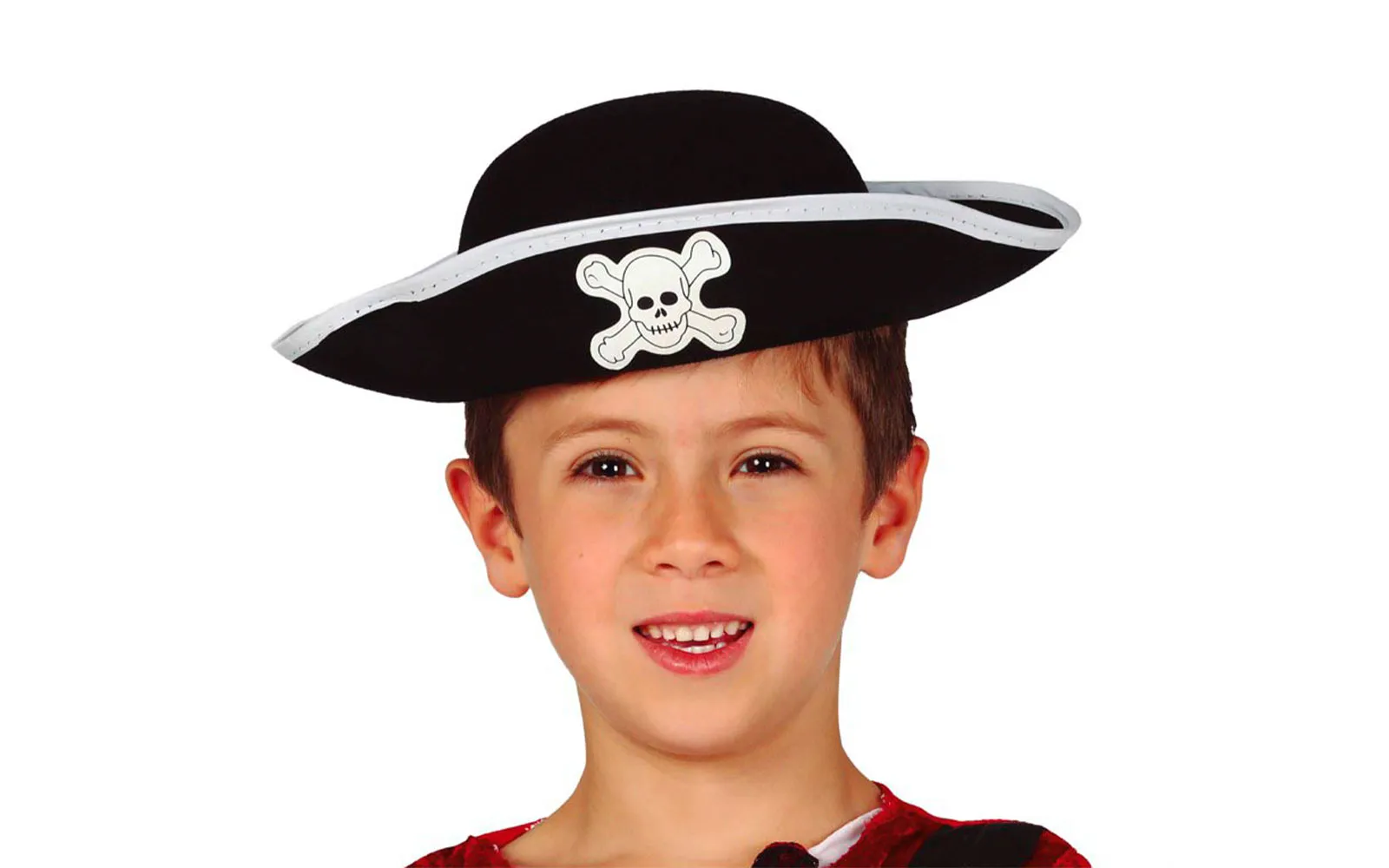 Pustni klobuk pirat - za otroke. Klobuk je zabaven in kakovosten otroški klobuk v piratskem slogu. Izdelan je iz trpežnih materialov, ki omogočajo udobno nošenje med igro ali pustnimi zabavami. Popoln dodatek za vse male pustolovce, ki si želijo postati pravi pirati in popeljati domišljijo na nepozabno potovanje.