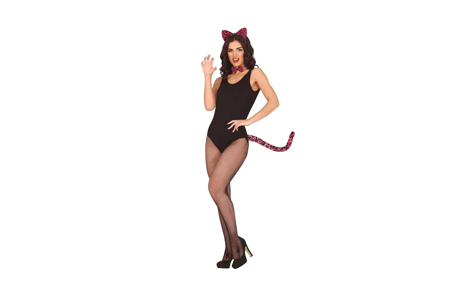 Pustni obroč Leopard, roza barve + metuljček+rep.Spremenite se v divjo mačko s tem igrivim kompletom! Vsebuje naglavni obroč z ušesi v leopardjem vzorcu, ujemajočo se pentljo za okoli vratu in dolg rep. Popoln dodatek k mačjemu kostumu za pustovanja, tematske zabave ali odrske nastope. Komplet je namenjen odraslim in bo zagotovo pritegnil poglede!
