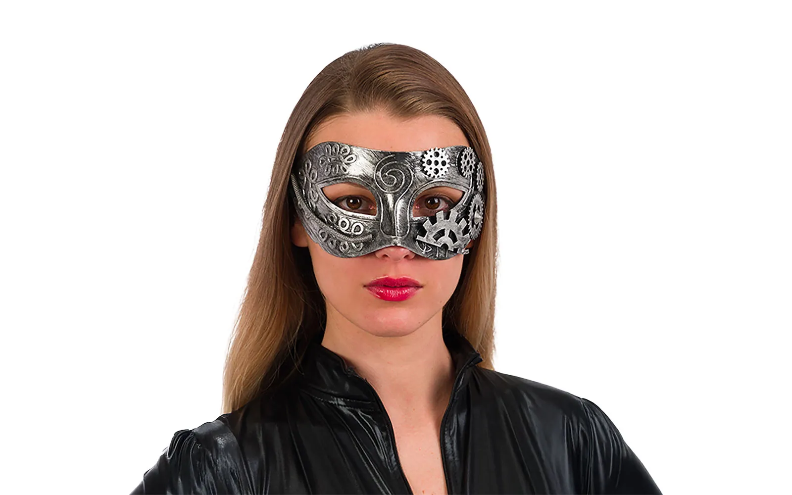 Srebrna obrazna maska, Carnival Toys. Maska prekrije celoten obraz. Je iz PVC materiala in je srebrne barve. Nadeni si pustno masko in pričaraj pravo pustno vzdušje.
