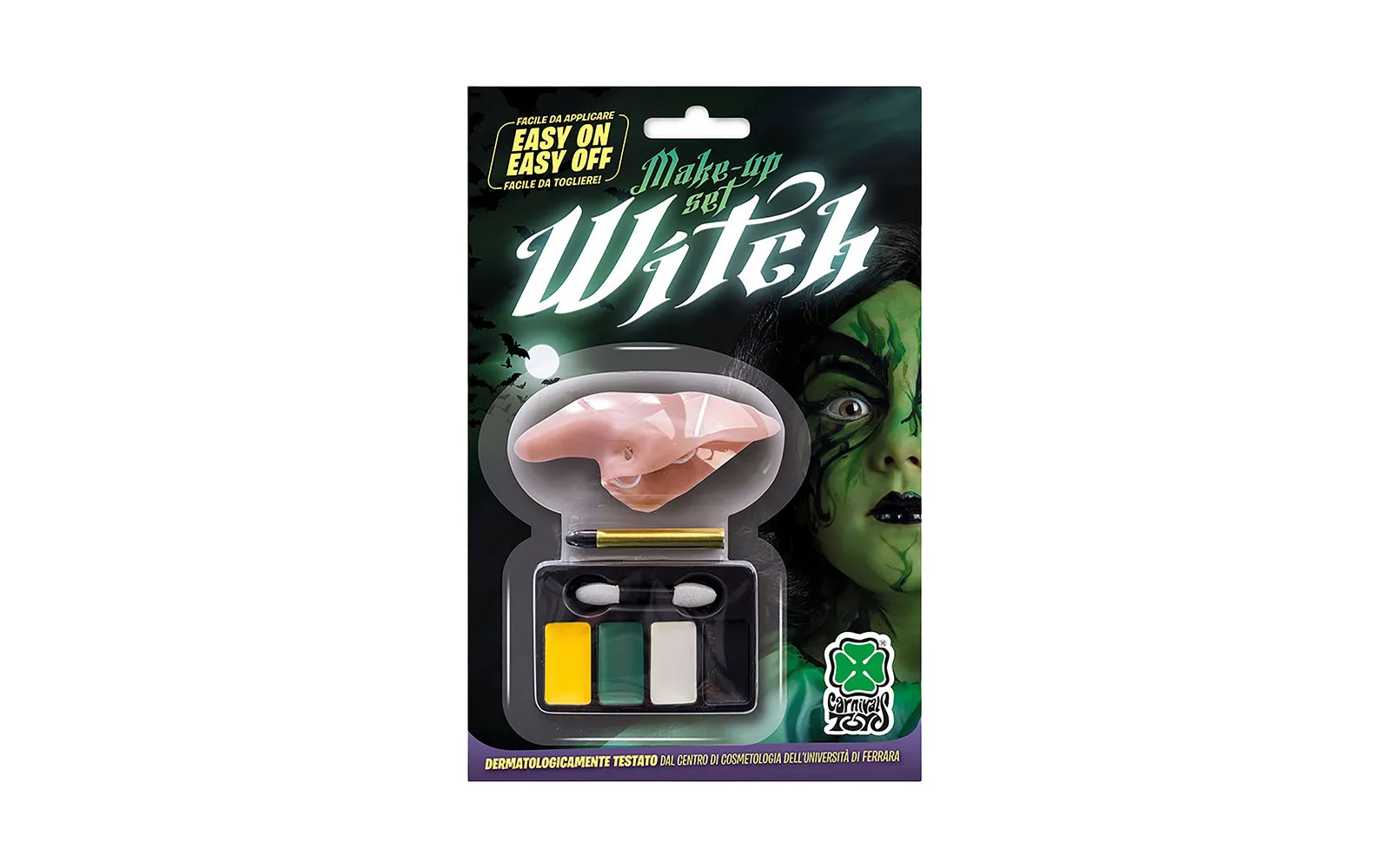 Komplet barv za obraz s čarovniškim motivom in posebnim dodatkom - nos je idealen za pustne zabave, kostume in ustvarjanje popolnega čarovniškega videza. Barve so varne, enostavne za nanašanje in dolgotrajne, da te spremljajo skozi vso zabavo.