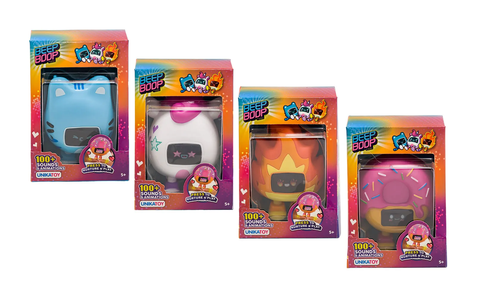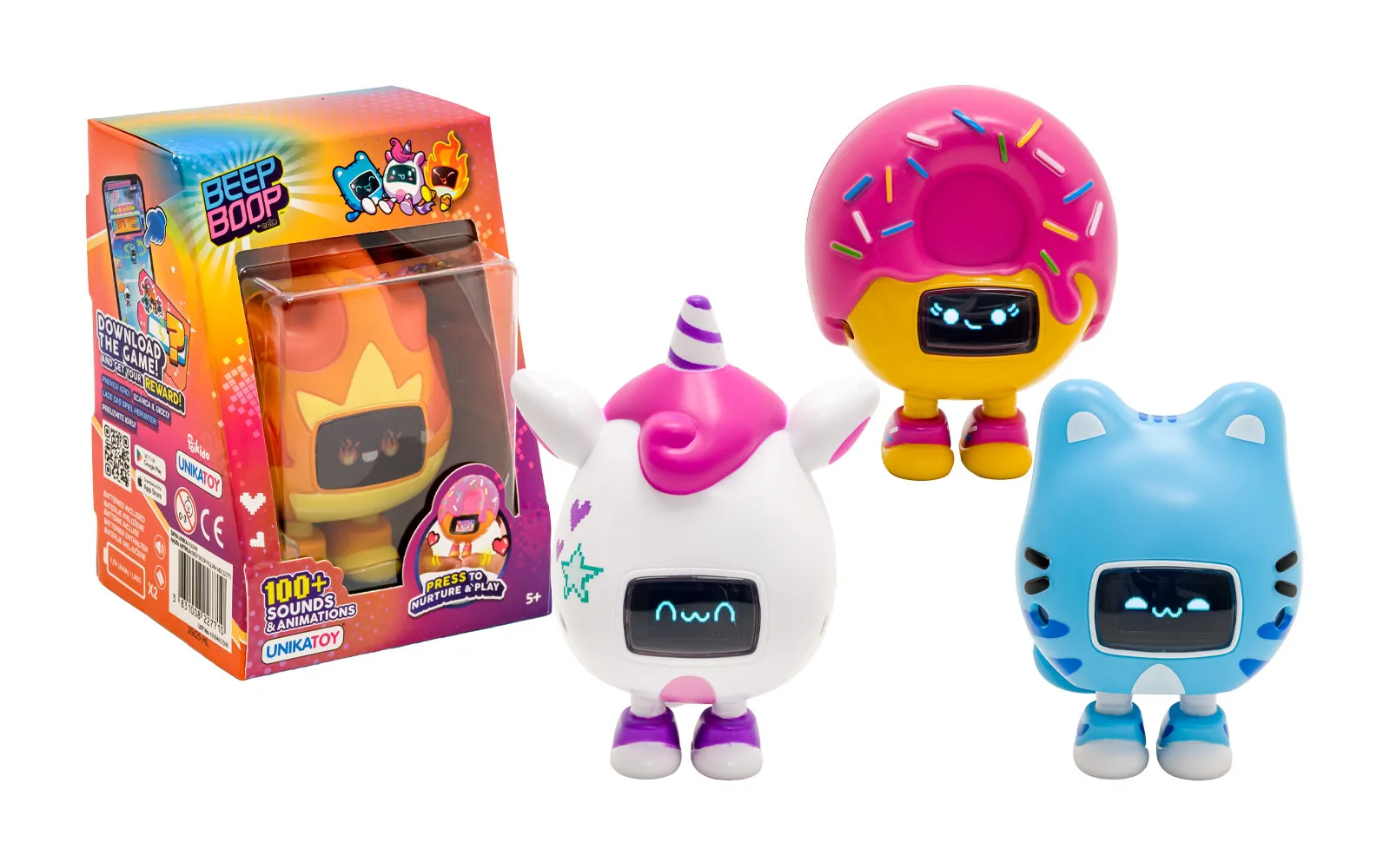 Beep Boop, figurica je majhna elektronska figurica, ki je v obliki obeska za ključe z majhnim zaslonom in gumbi. Na voljo več različnih figuric - različni stili in barve. So pravcati majhni prijateljčki. Figura ima zaslon, več kot 100 novih obraznih mimik in animacij, več edinstvenih interakcij, ki pokrivajo tri različna razpoloženja in šest naključnih čustvenih odzivov,... Dodane so tudi 4 igrice, ki so povezane z njegovimi potrebami. Figura je iz trdne plastike, z obeskom za namestitev na hlače ali torbo, LCD zaslonom ter nogicami, ki so namenjene upravljanju. Postavi figurice Beep Boop skupaj in skupaj bodo zapeli!