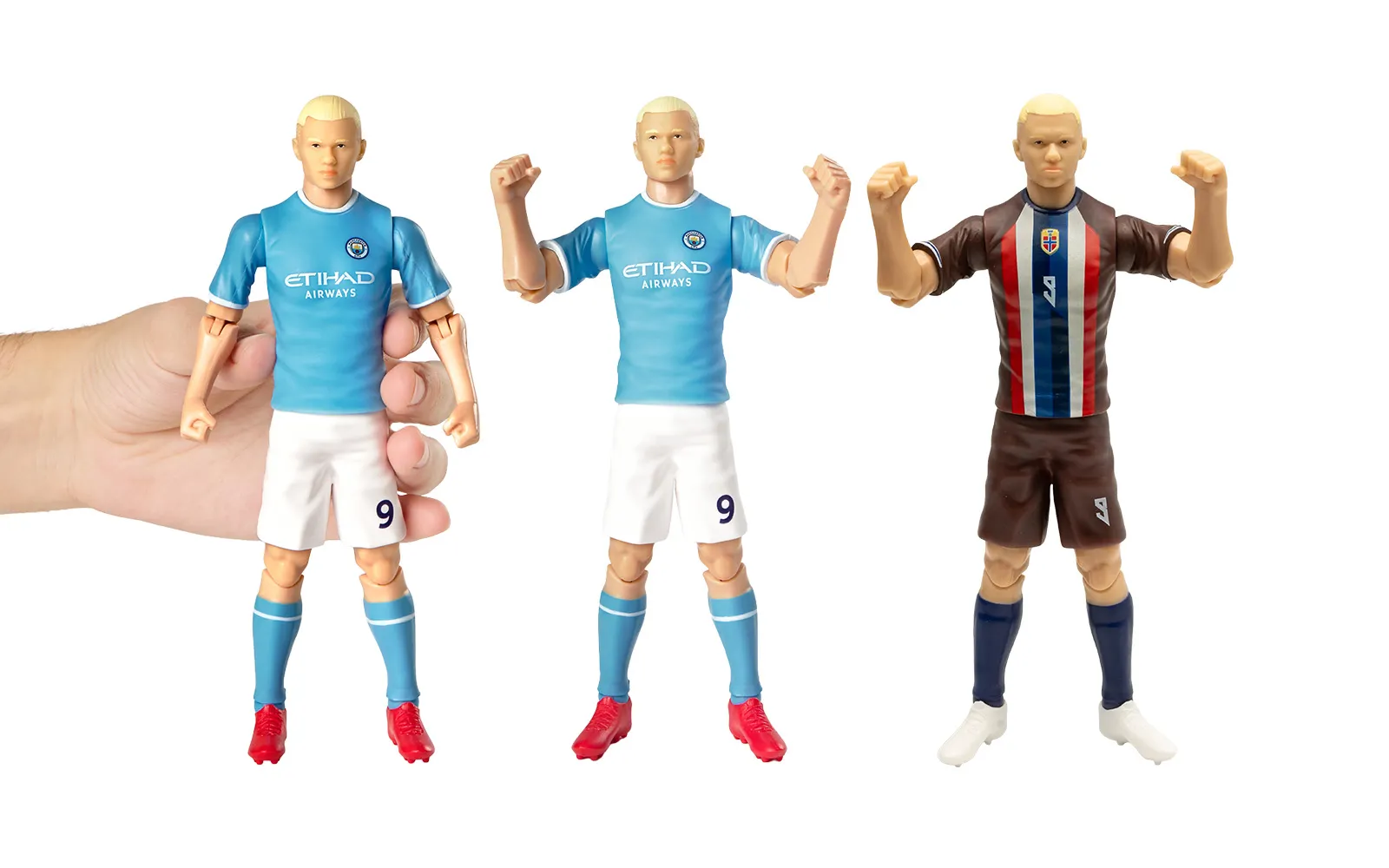 Nogometna figura, Haaland, 20 cm. Odkrijte avtentično figuro priljubljenega igralca nogometa Haaland-a. Figura je visoko kakovostne izdelave, ima gibljive okončine, nosi številko kluba ter ima priloženo nogometno žogo.