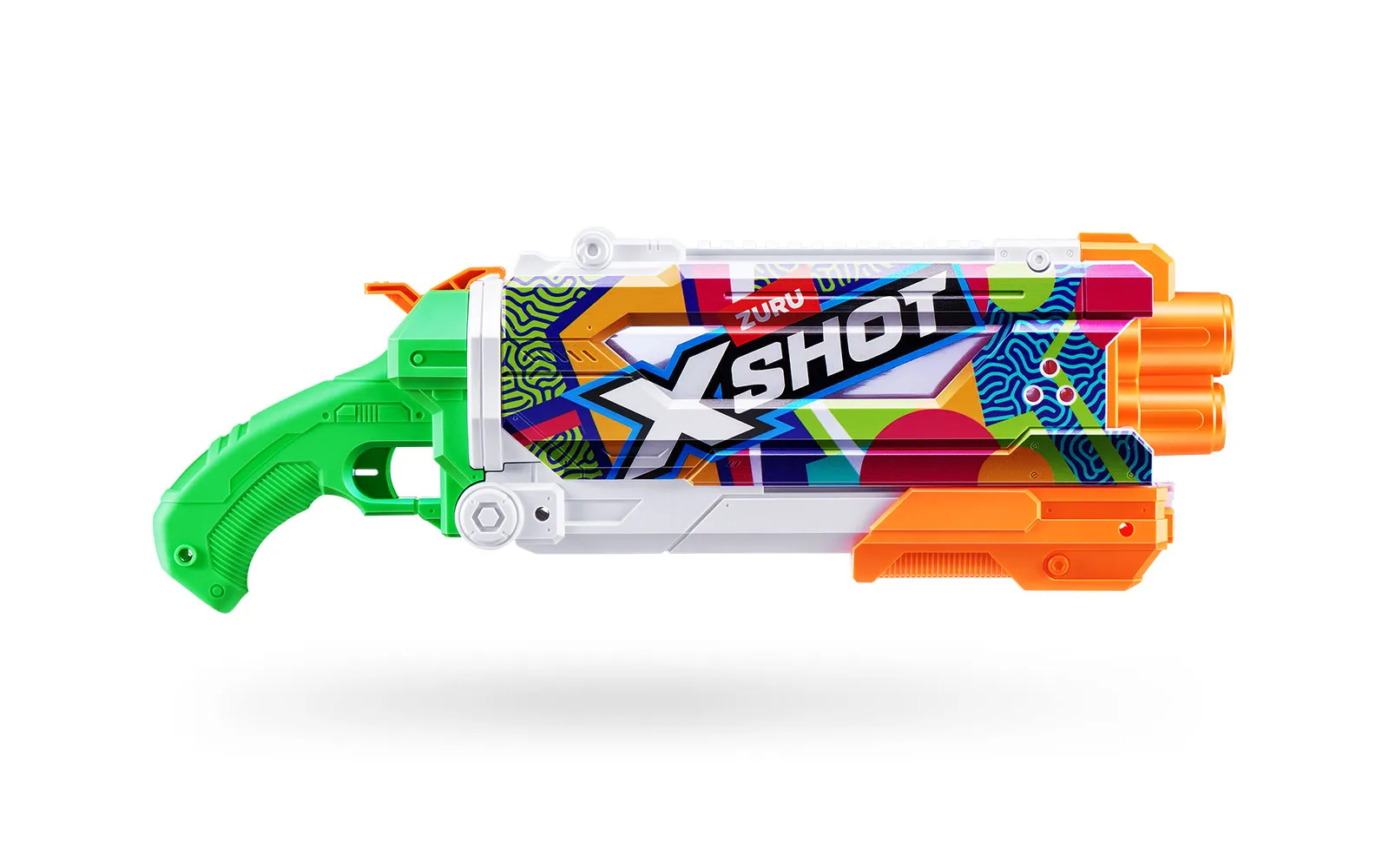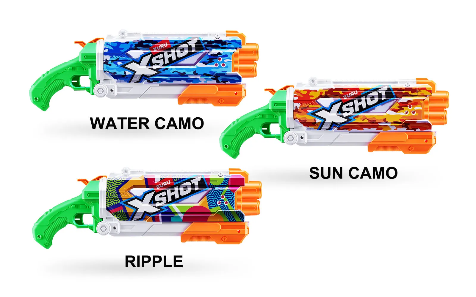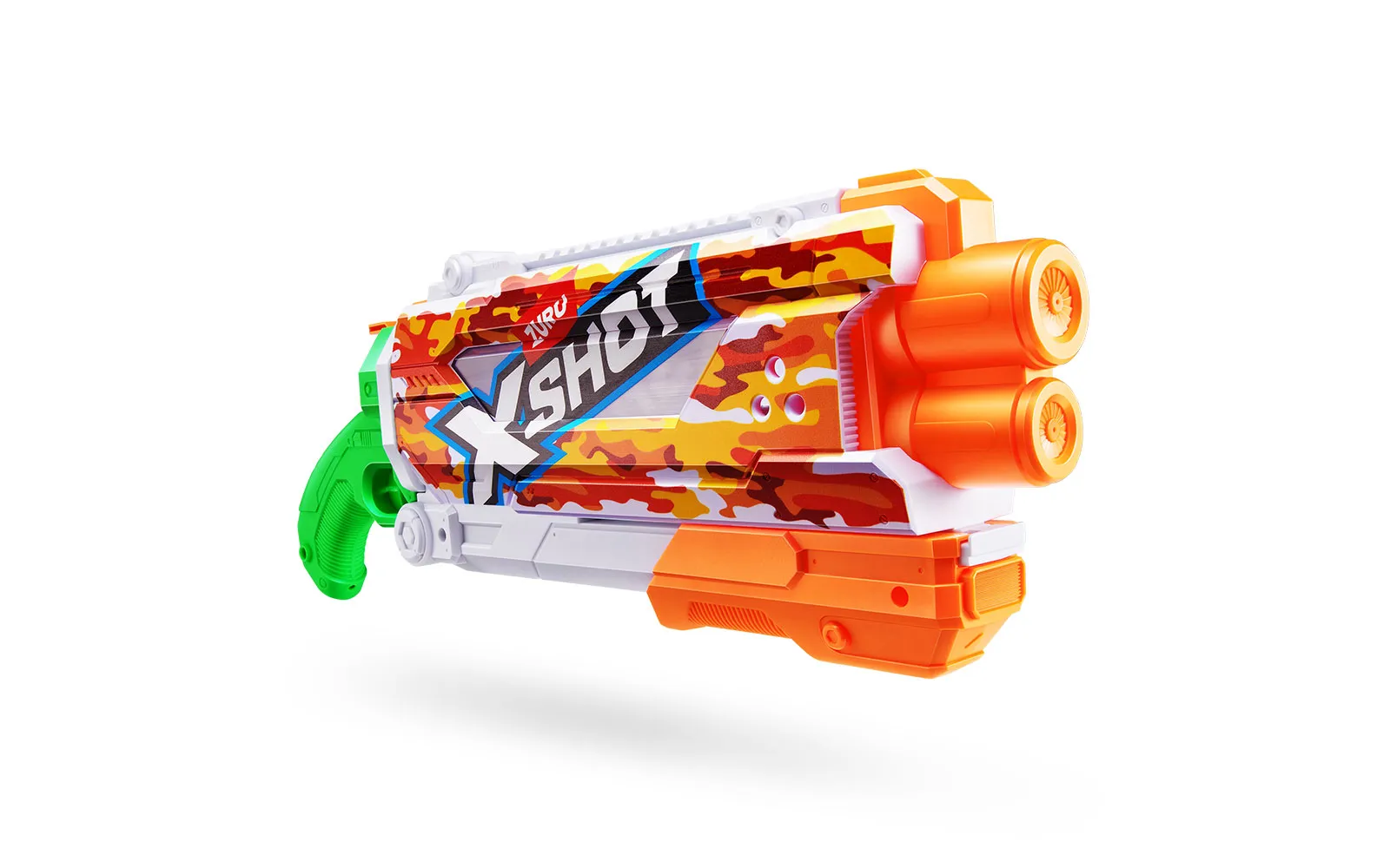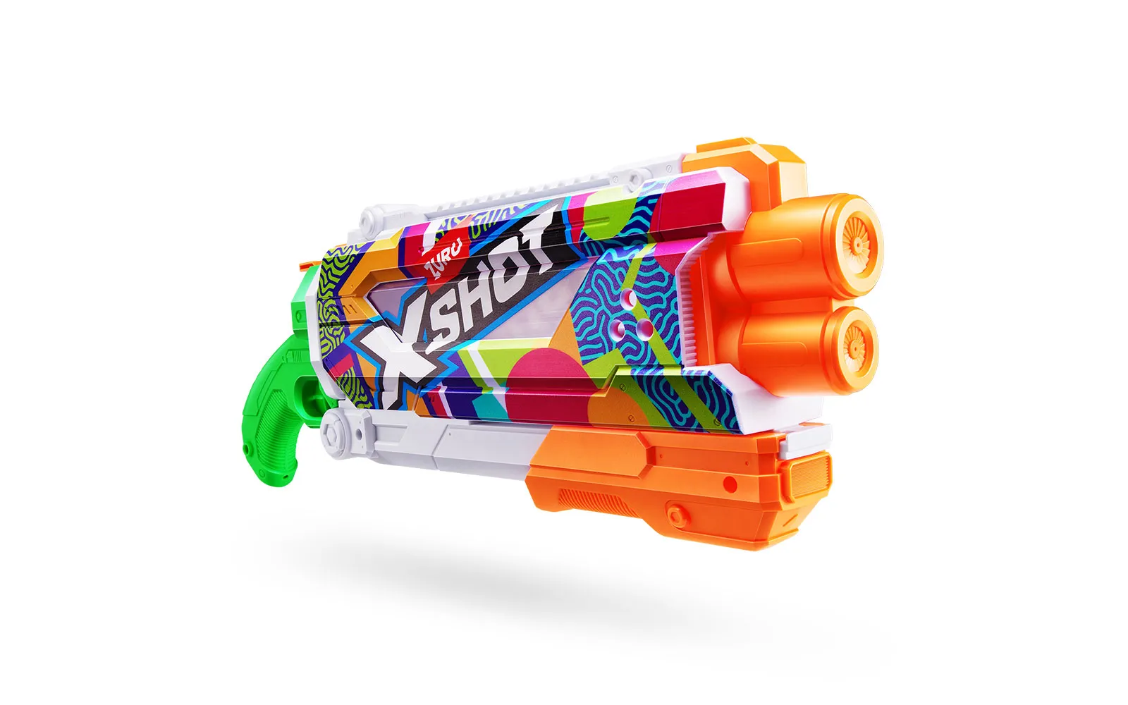Vodna puška Pump Skins Fast Fill, X-Shot, priznane blagovne znamke Zuru. Vodna puška je dolga 50 centimetrov s kapaciteto 800 ml, polnjenje pa je enostavno in zabavno - odpri pokrovček, potopi jo v vodo, zapri pokrovček in že si pripravljen za vodno zabavo - vse to le v eni sekundi! Vodni curki imajo doseg kar do 9 m! Na voljo v treh različnih stilih.