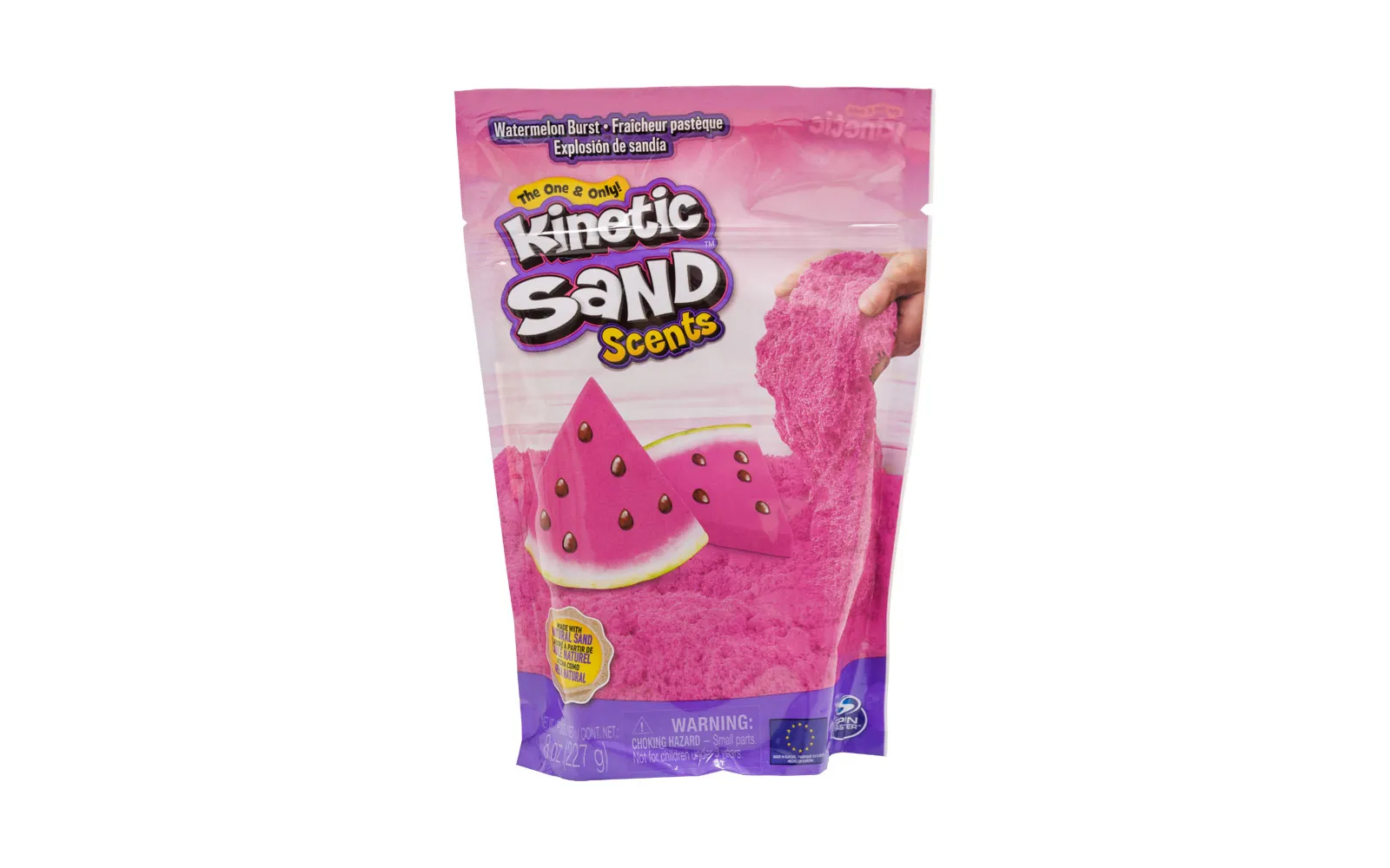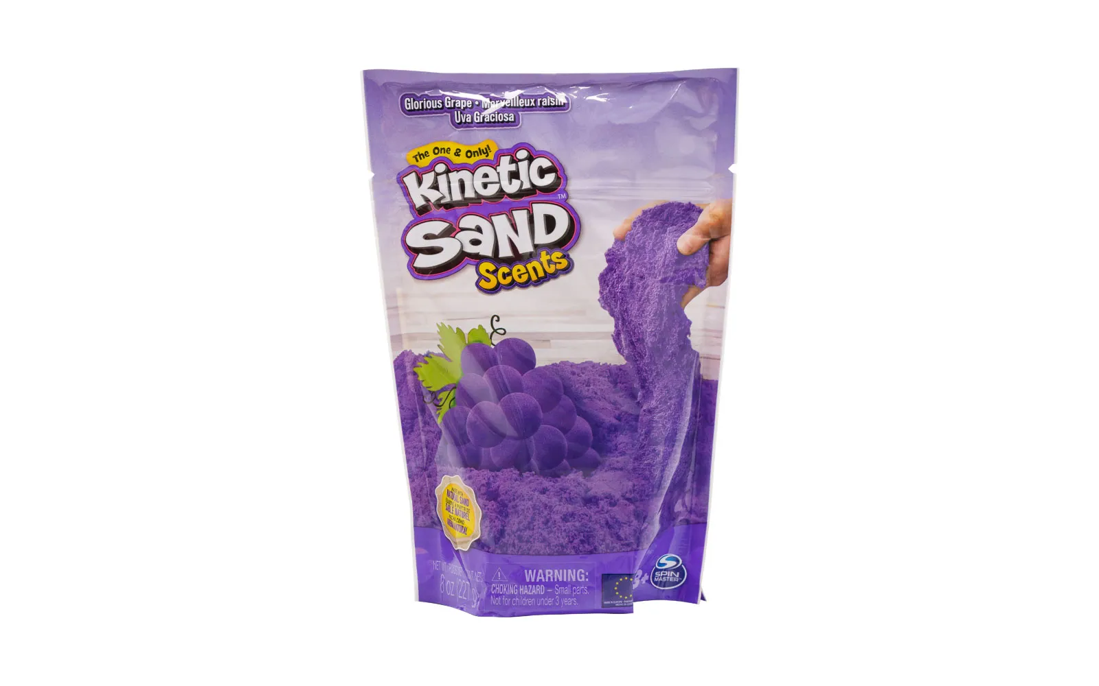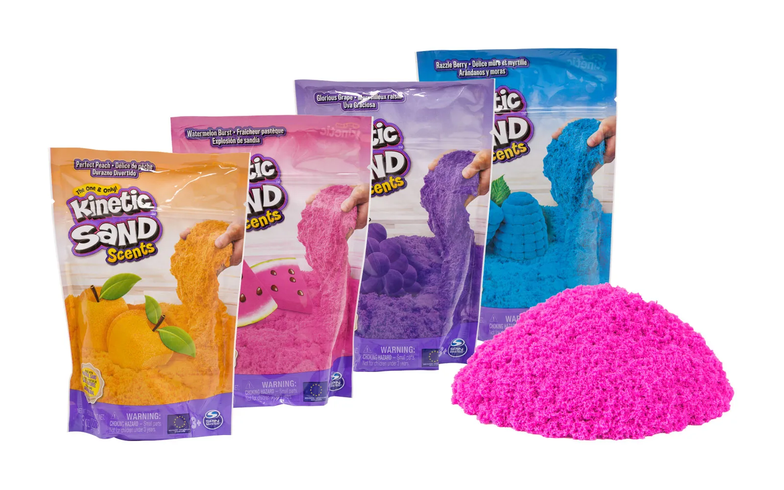 Dišeči kinetični pesek, Kinetic Sand, Spin Master. Na voljo v oranžni, vijolični, modri ali roza barvi. Set vsebuje 227 g kinetičnega peska. Mivka kinetičnega peska je proizvedena na Švedskem.