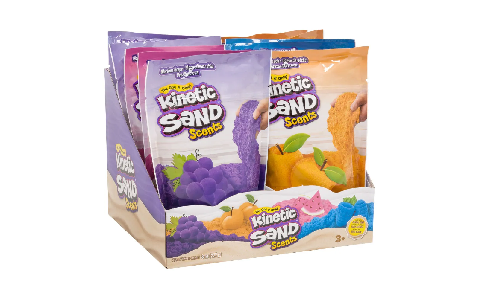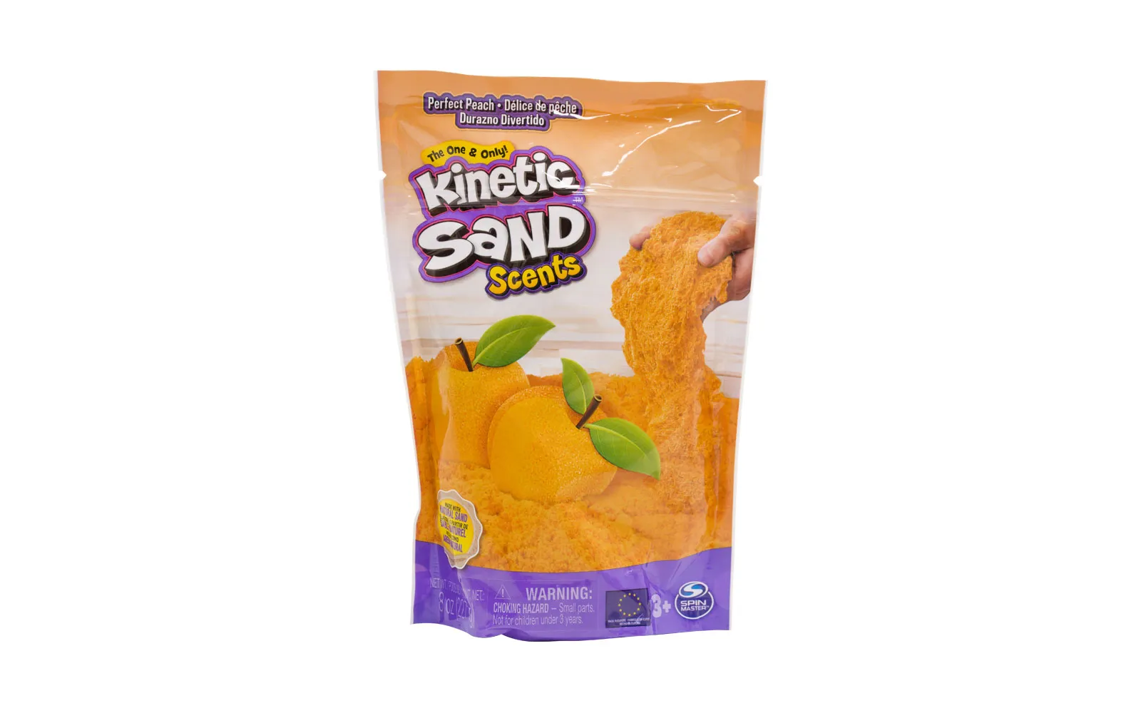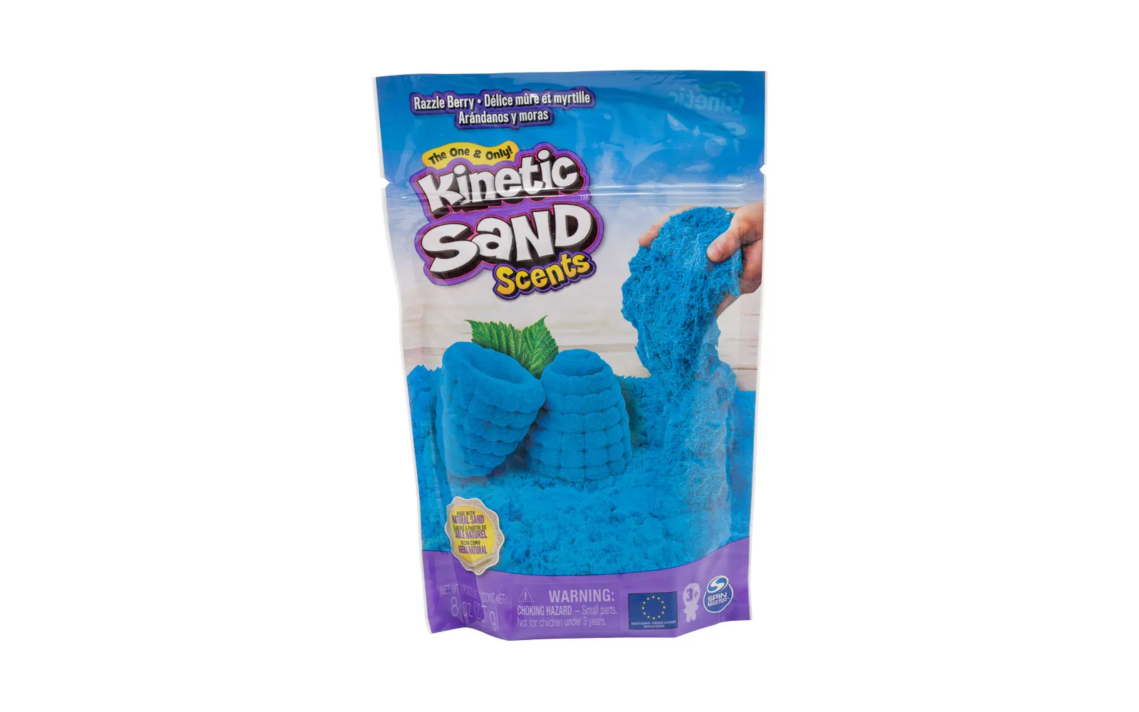 Dišeči kinetični pesek, Kinetic Sand, Spin Master. Na voljo v oranžni, vijolični, modri ali roza barvi. Set vsebuje 227 g kinetičnega peska. Mivka kinetičnega peska je proizvedena na Švedskem.