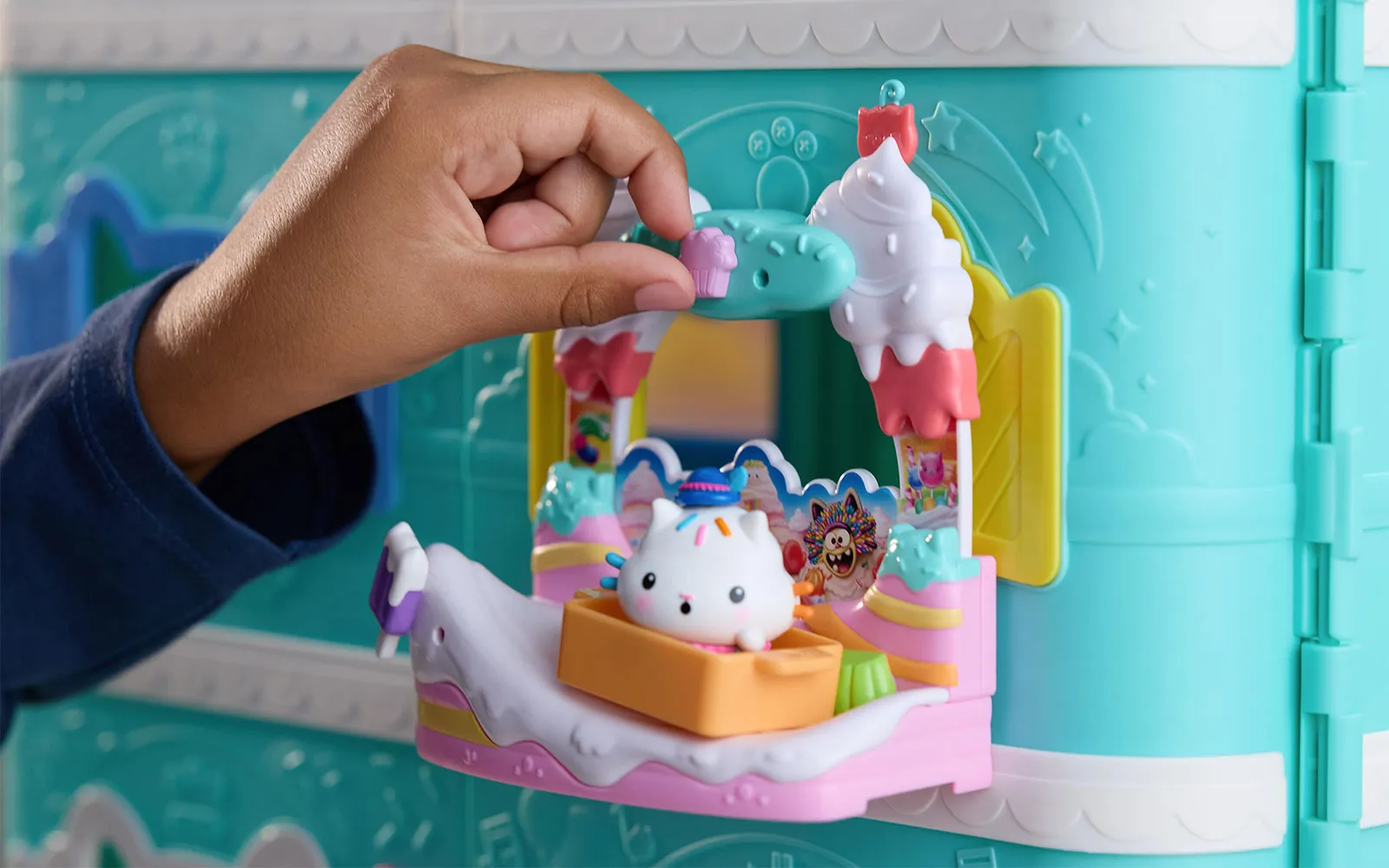 Balkon movie, Gabby's dollhouse. S setom balkončka spoznate nove junakce filma Gabby's dollhouse, hkrati pa imajo balkončki različne premikajoče se elemente. Izbirate lahko med Aquarium world, Crystal Garden World ali Confectionary World. Z balkončki si lahko posodobite svojo hišico Gabby's dollhouse.