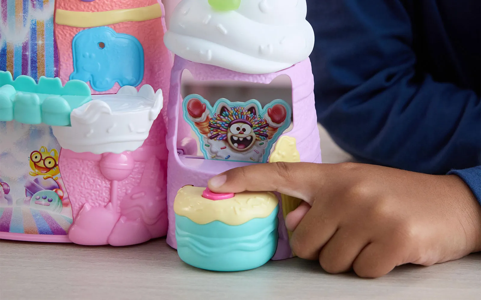 Movie sweet set, Gabby's dollhouse.Set Gabby's Dollhouse Sprinkle Party Sweet Treat Set vključuje 15 različnih kosov, vključno s skodelicami, krožniki, žličkami, pladnjem, sladkorjem, penastimi bomboni, sadjem in smetano. Otroci lahko ustvarijo sladke zabave, napolnijo skodelice s toplo čokolado, dodajo bombone in sadje ter zavrtijo smetano za razkritje okusnega peciva. Komplet spodbuja domišljijo in igro vlog, kar omogoča ustvarjanje različnih scenarijev.