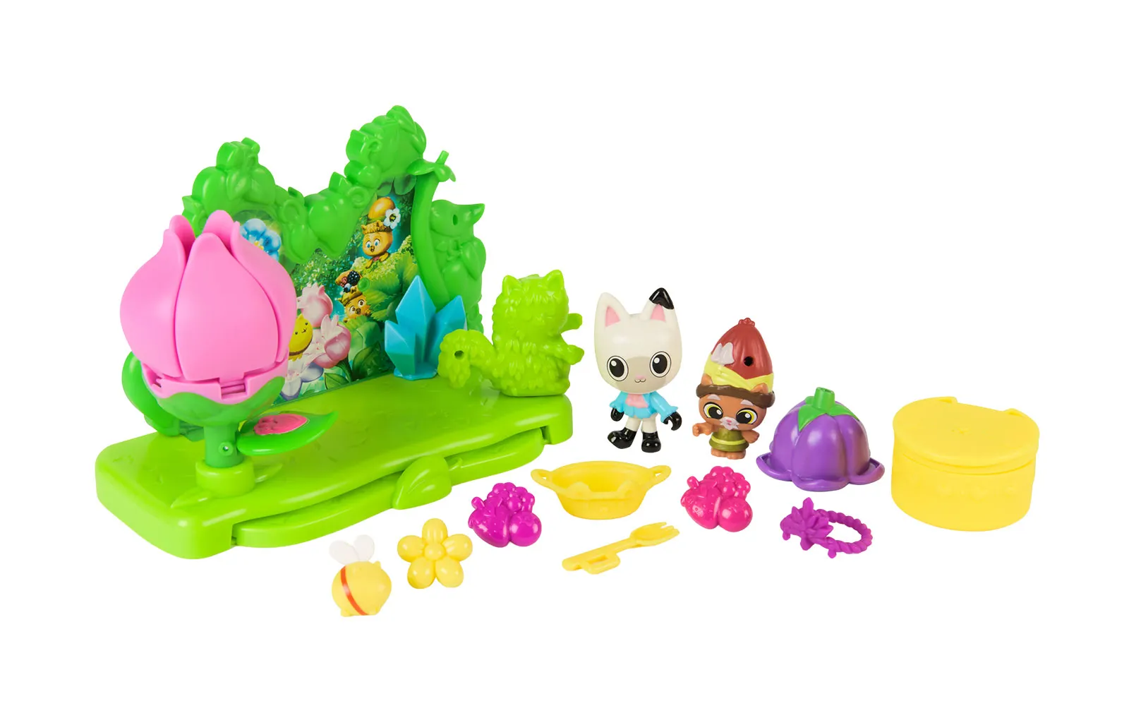 Movie garden set, Gabby's dollhouse. Pridružite se junakinji Gabby pri urejanju vrtička in z dodanimi pripomočki ustvarite najlepše vrtičarsko doživetje!