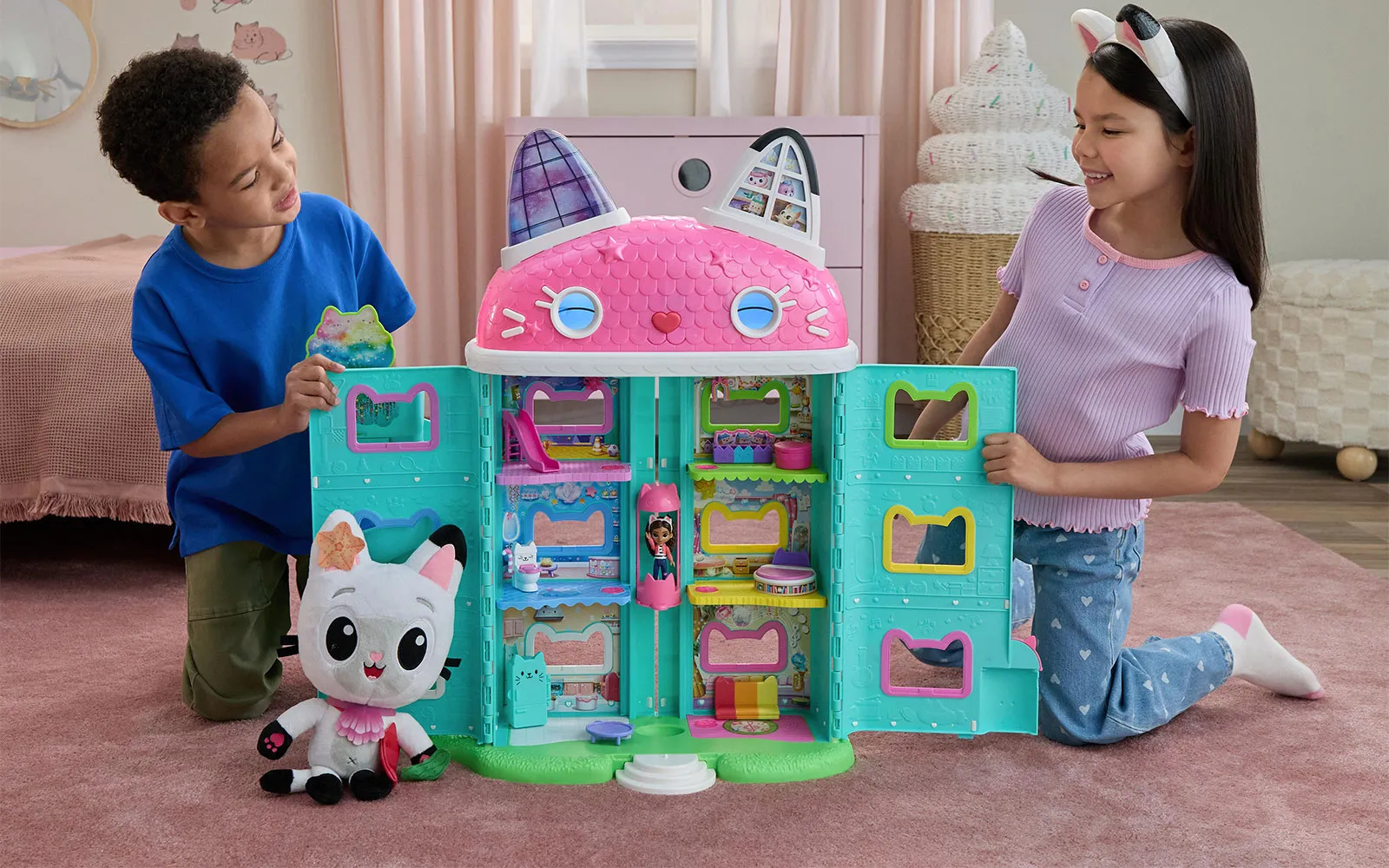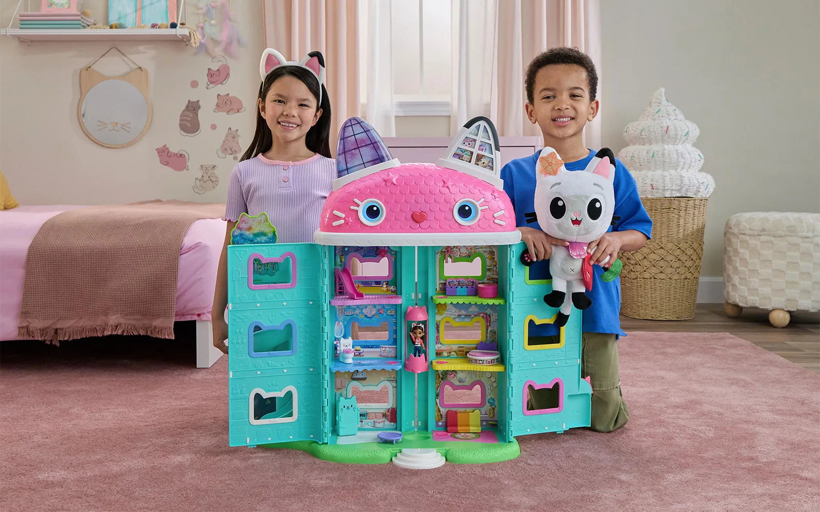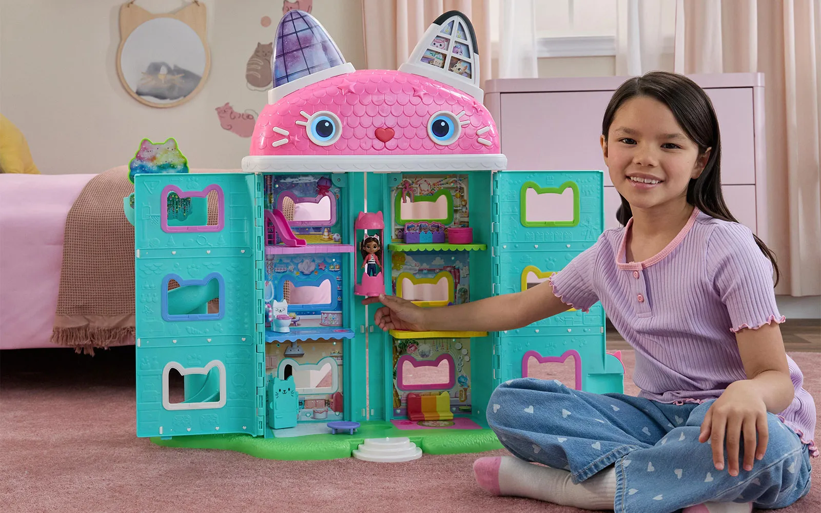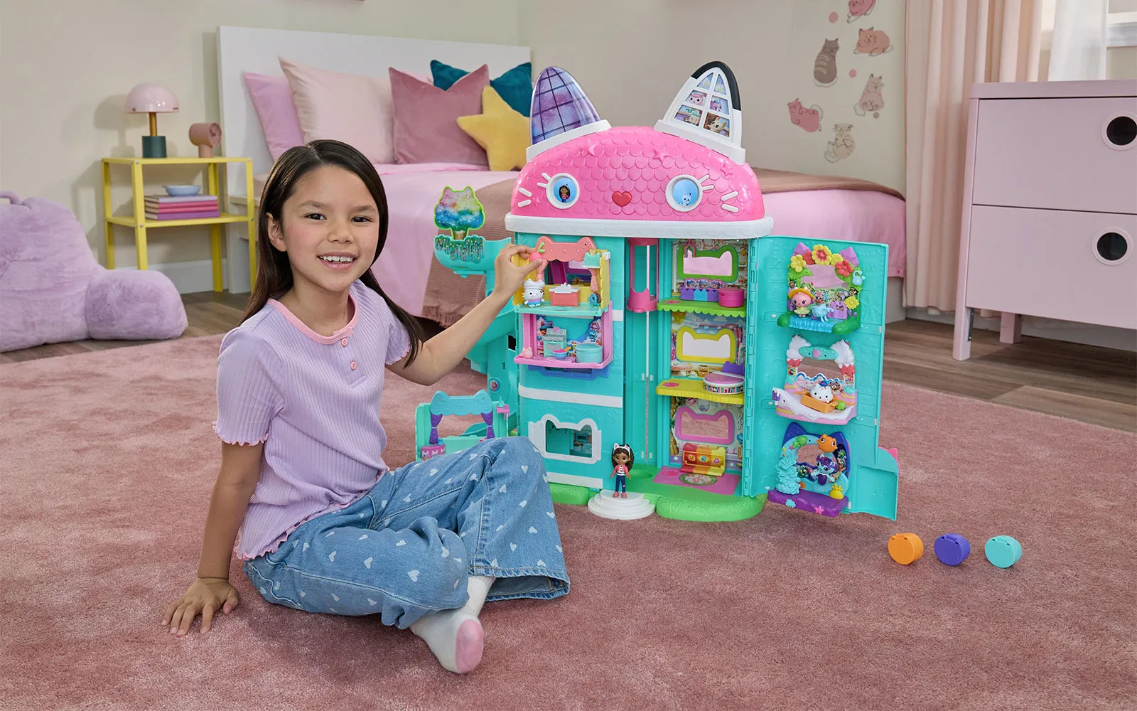 Vstopite v čudovit svet risanke Gabby’s dollhouse in odkrijte ljubke mačke in barvite čarovnije!Set vsebuje interaktivno mačjetastično hišico.