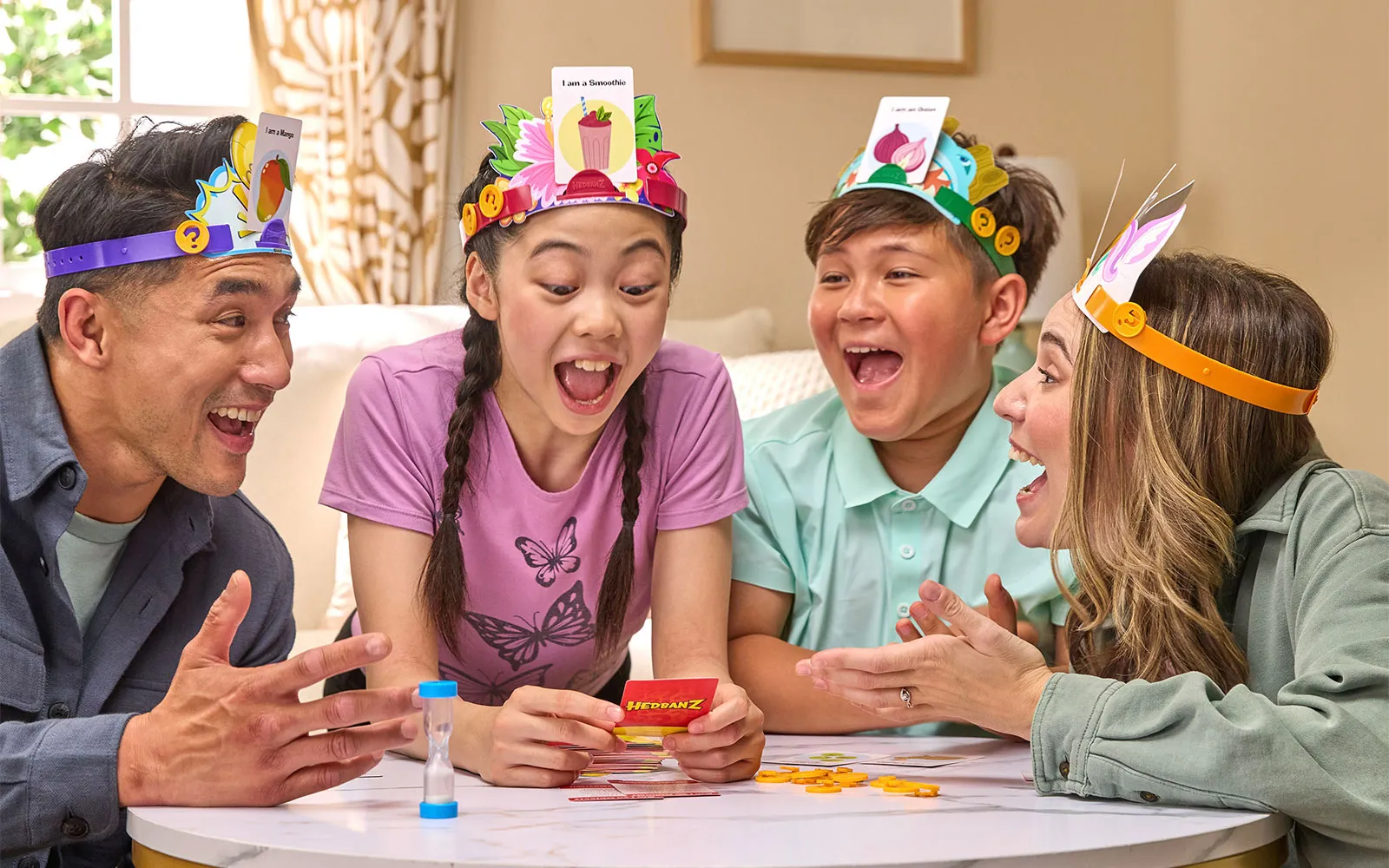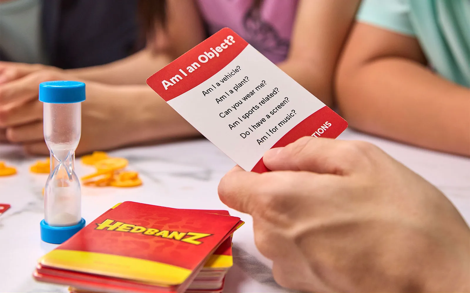 V družabni igri HEDBANZ SERIJA 3 družinskega ugibanja igralci dobijo tri točkovalne značke in vsak potegne kartico, ki jo lahko prilepi na naglavne trakove, ne da bi pogledal. Ko ste na vrsti, obrnite merilnik časa in postavite vprašanja z da ali ne, da ugotovite, kaj ste – žival, hrana ali predmet! Uganite pravilen odgovor in si na naglavni trak prilepite točkovno značko, nato izberite novo karto in nadaljujte s postavljanjem vprašanj! Prvi igralec, ki si prisluži tri točke zmaga! Družabna igra Hedbanz je zabavna za otroke, starše in stare starše ter je kot nalašč za zabaven družinski večer! Otroci bodo skozi igro razvili eduktivno sklepanje in spretnosti reševanja problemov na zabaven način. Igra je primerna za 2 do 6 igralcev, starosti od 8. leta dalje.