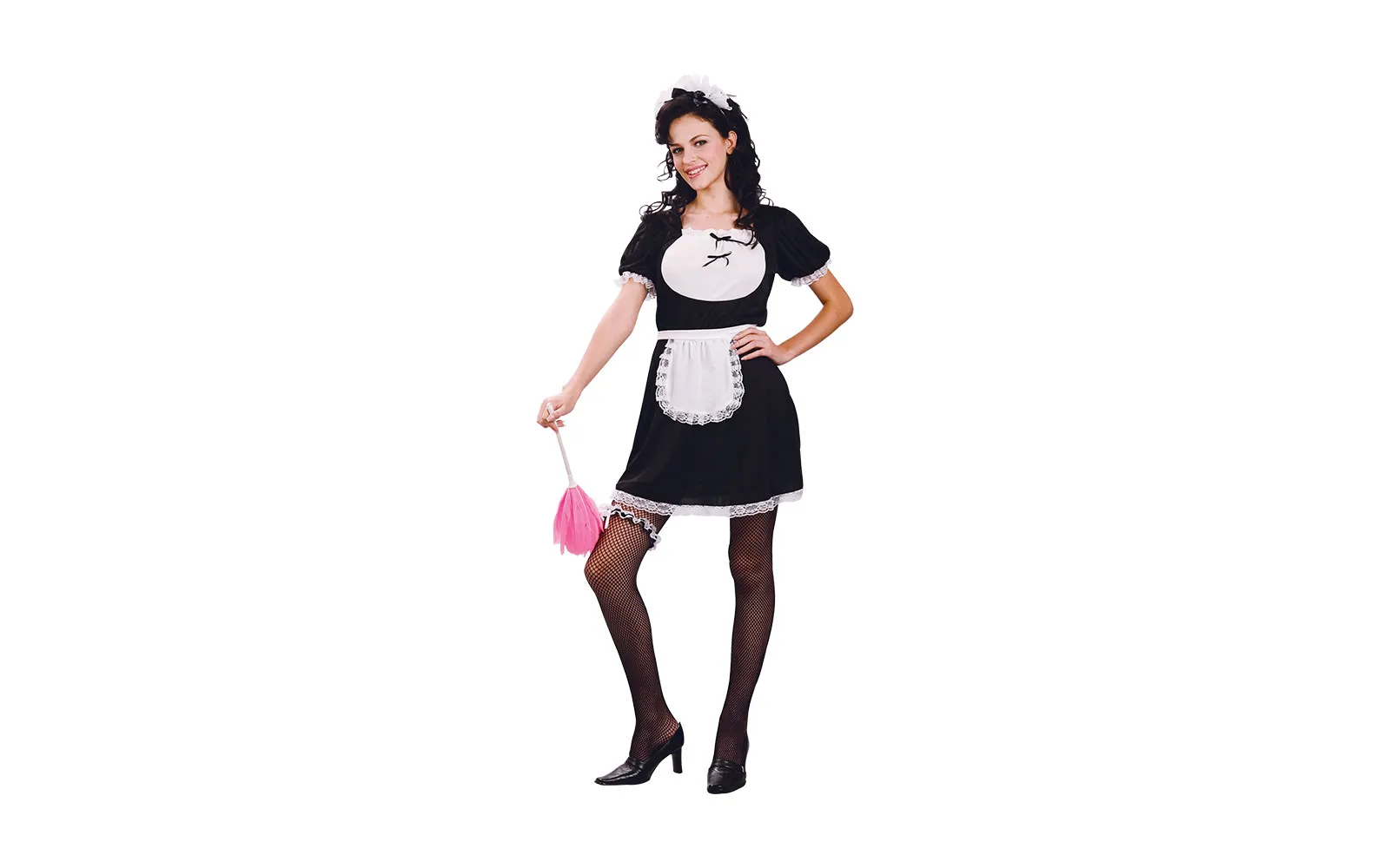 Elegantno in čudovito! Kostum služabnice za odrasle vključuje klasično črno-belo oblekico s čipkastimi detajli, predpasnikom in čepico. V setu niso vključeni čevlji, najlonke, pripomoček za brisanje prahu ter podvezica. Idealen za pustne zabave, tematske večere ali igrive kostumske dogodke. Udoben kroj in raztegljiv material poskrbita za prijetno nošenje in popoln videz.