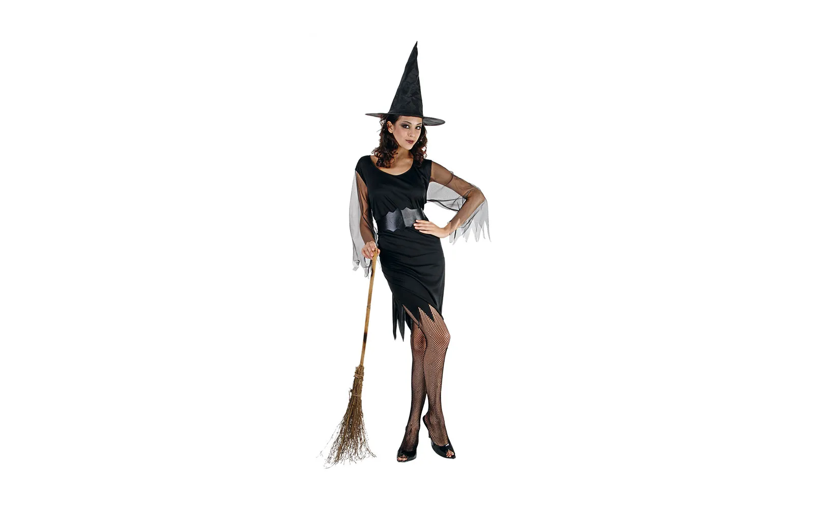 Očarajte s tem seksi kostumom čarovnice za odrasle! Kostum vključuje kratko, elegantno črno oblekico z detajli, ki poudarijo vašo privlačnost ter pas. V setu niso priloženi čevlji, metla, klobuk in najlonke. Odličen za pustne zabave, noč čarovnic ali tematske dogodke, kjer želite izstopati. Narejen iz udobnih in raztegljivih materialov za enostavno nošenje.