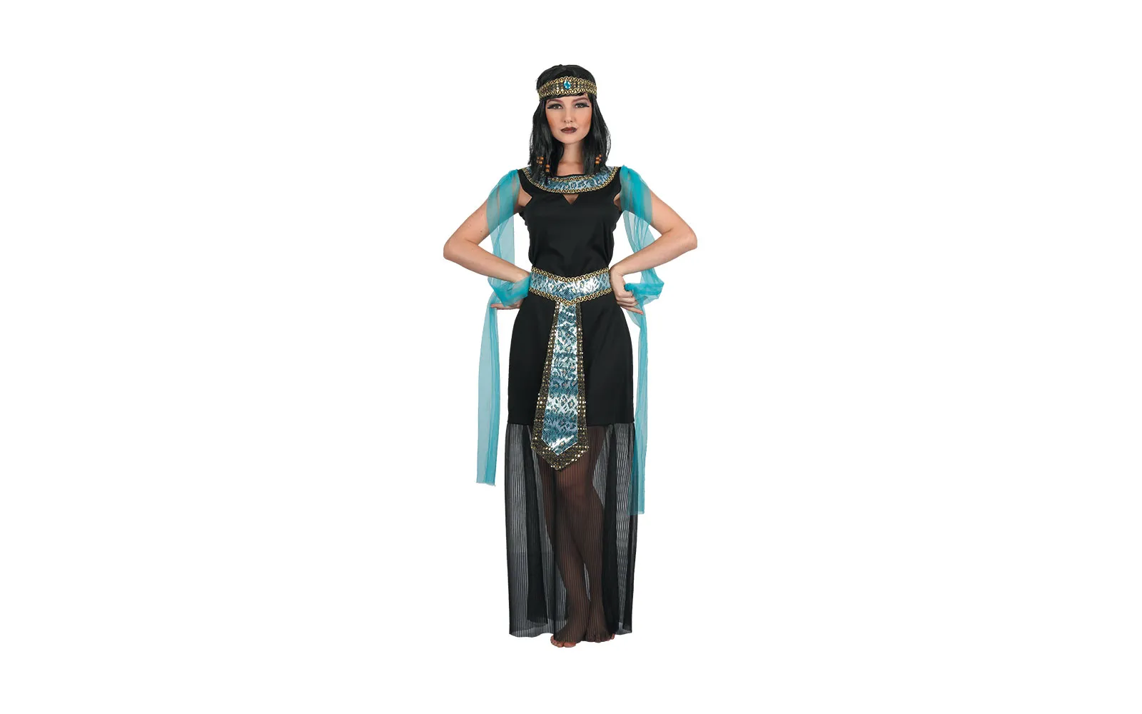 Stopi v vlogo veličastne egipčanske kraljice s tem osupljivim kostumom! Vključuje elegantno obleko v črni barvi z detajlii, pas, ogrinjalo in naglavni trak. Idealna izbira za pustno rajanje ali zgodovinske tematske zabave.