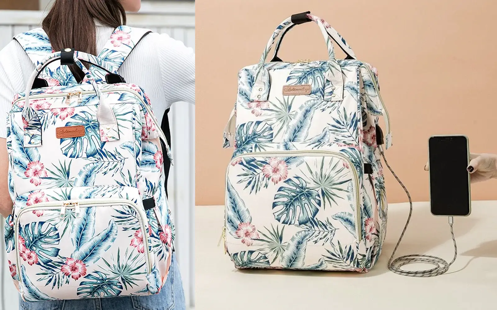 Ne veste kam bi pospravili vse otrokove potrebščine, ko greste na sprehod ali izlet? Predstavljamo vam previjalno torbo/nahrbtnik z USB priključkom! Čudovit-a torba/nahrbtnik, v katero lahko pospravite vse kar potrebujete za nego vašega otroka, brez dodatnih vrečk in torb. Previjalna torba/nahrbtnik ima tudi USB vhod, da boste lahko med potjo hitro napolnili vašo mobilno napravo. Poskrbljeno je tudi za udobno nošenje, saj sta pasova izdelana ergonomsko, tako da ramenski obroč in križni predel ne trpita.