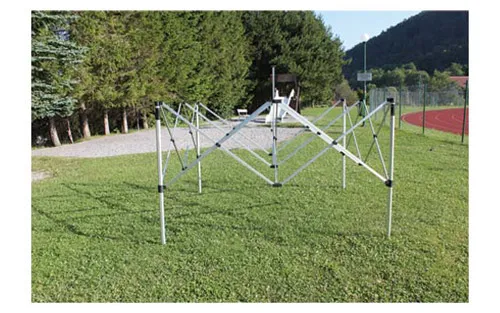 Rdeča tenda velikosti 3x6 m z aluminijasto konstrukcijo ter ognjevarno in vodoodporno ponjavo narejeno iz 230 g poliestra s PU in srebrnim UV premazom. Set sestavljajo še transportna torba, vrvice in klini. Ogrodje velikosti 40x1,5 mm.